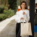 Material: 100% Cotton Canvas Fabric Weight: 5 oz. Size: 15"W x 16"H Imprint Area: 10"W x 12"H Handle Length: 21" Handle Style: Self-fabric Handles Package Quantity: 12 pcs Case Quantity: 240 pcs