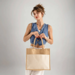 Material: 100% Jute (Burlap) Fabric Size: 15.5"W x 13.75"H x 6"D Imprint Size: 10"W x 7"H Handle Length: 19" Package Quantity: 6 pcs Case Quantity: 48 pcs
